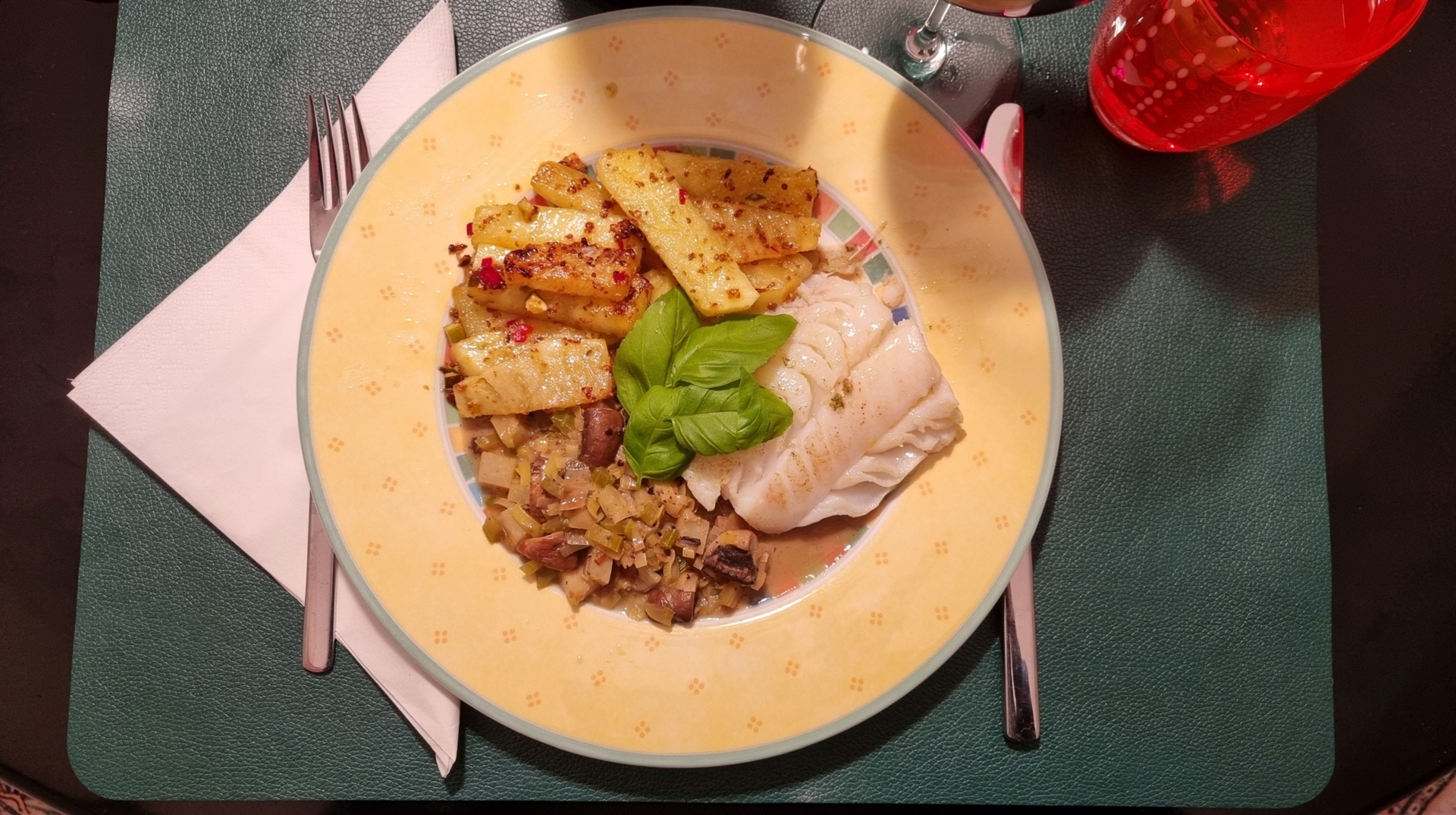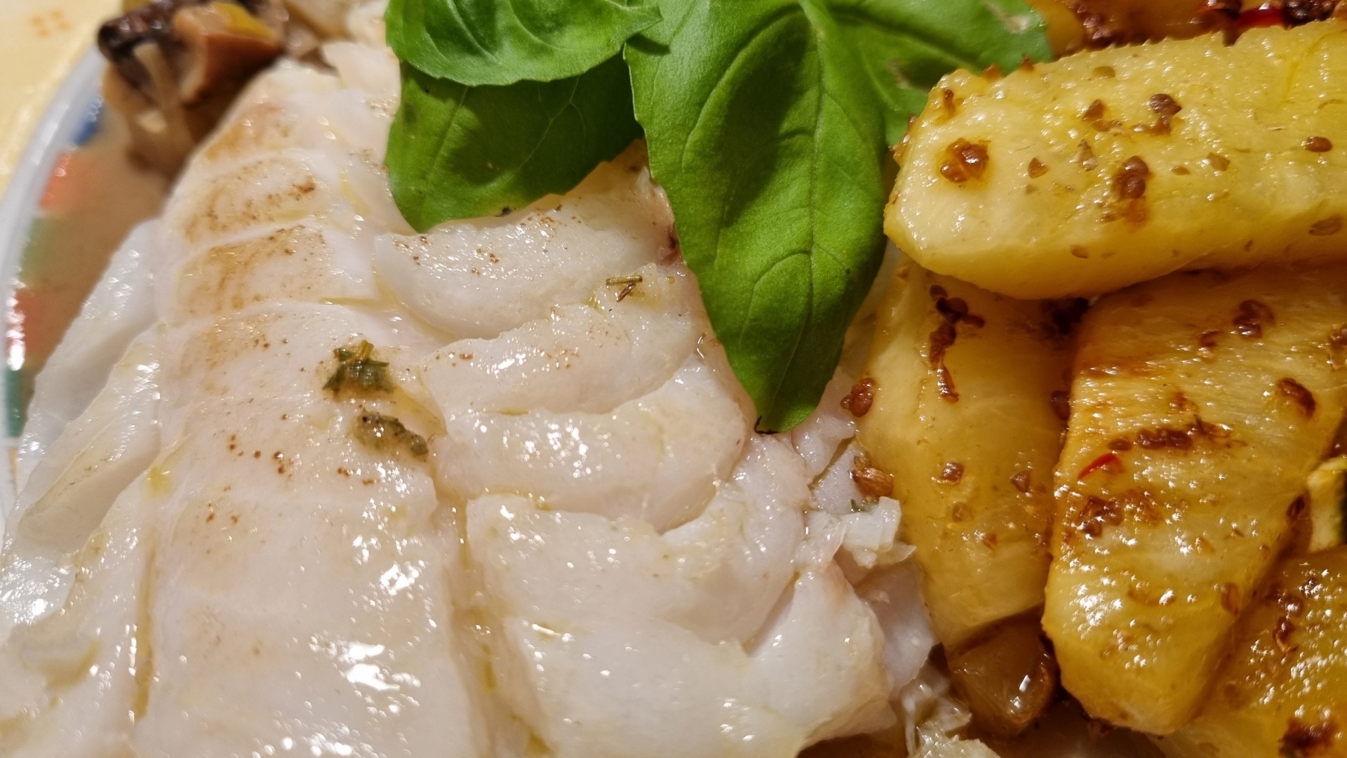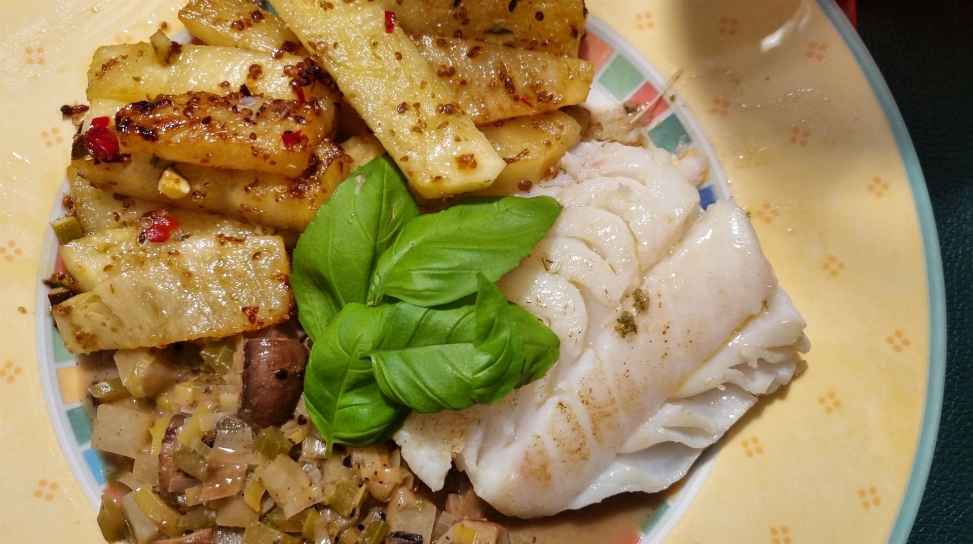 Kabeljau mit pikanter Ananas und geröstetem Gemüse