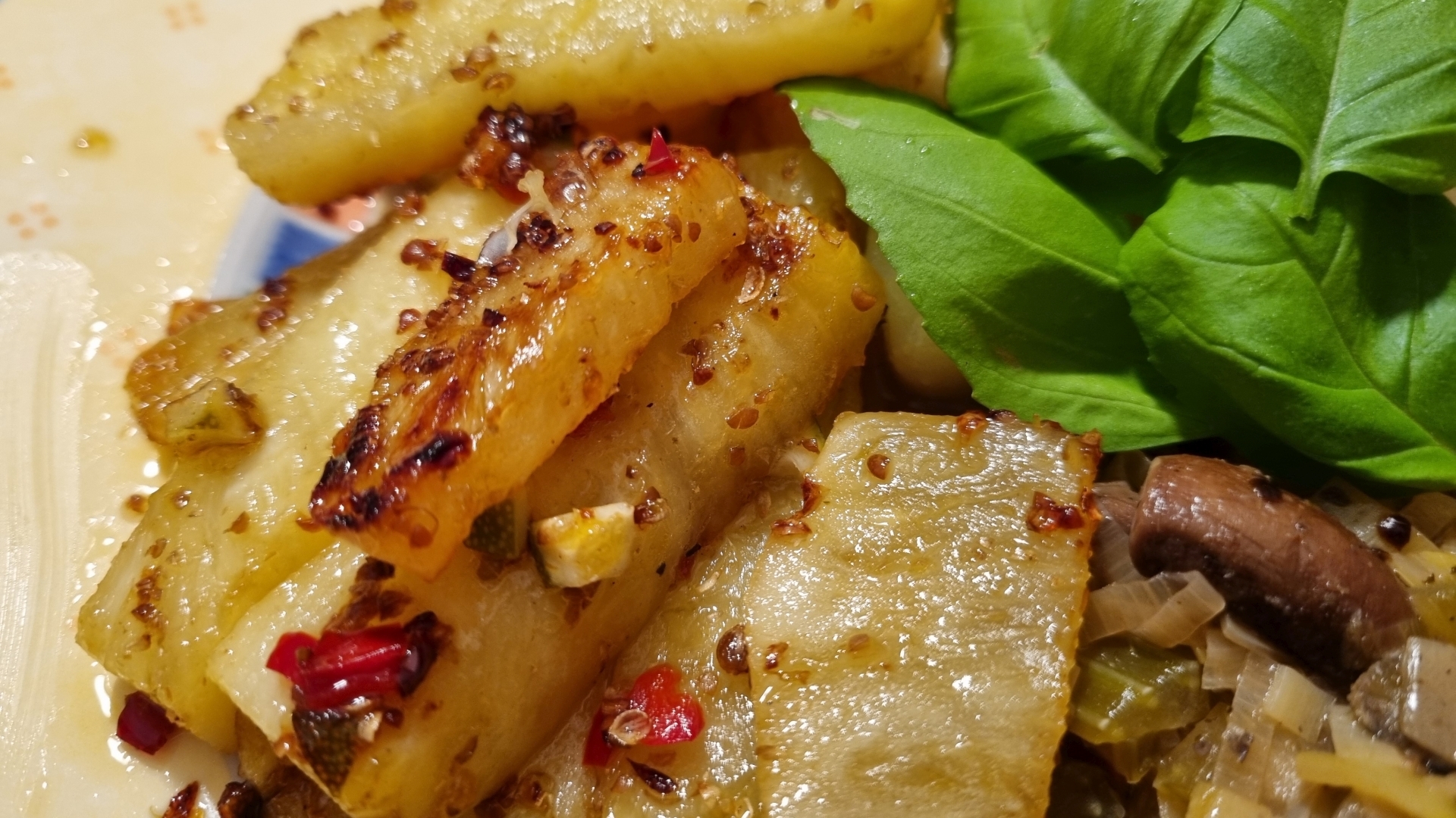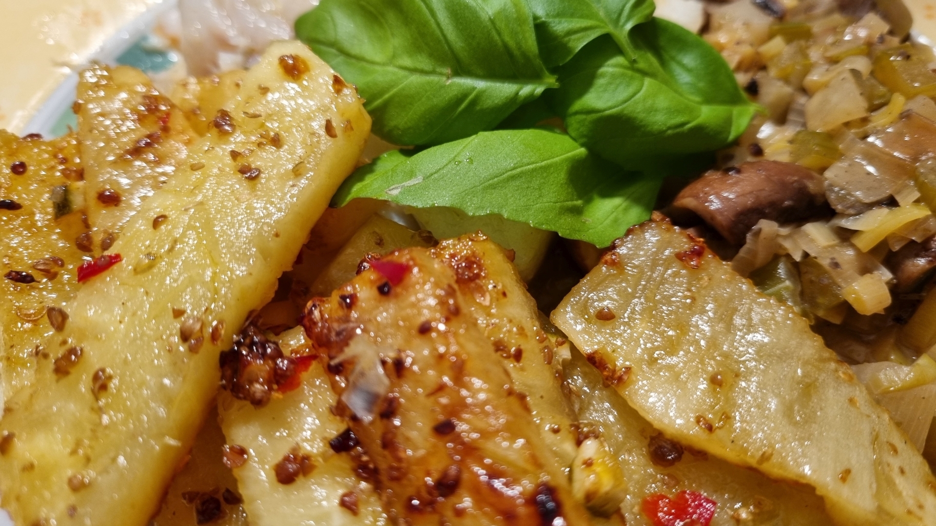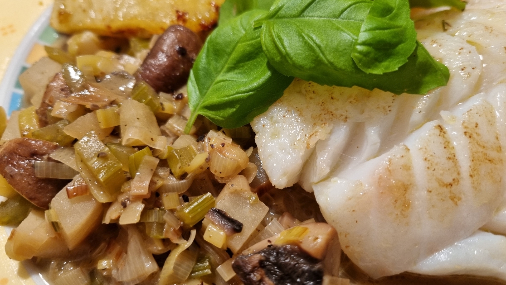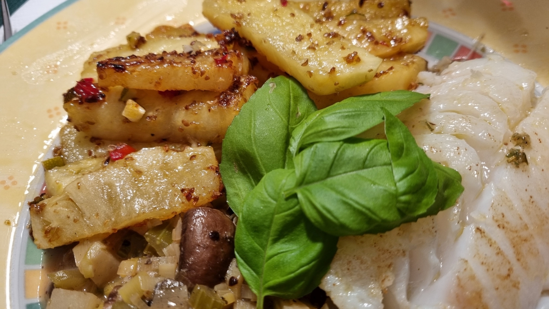 Kabeljau mit pikanter Ananas und geröstetem Gemüse