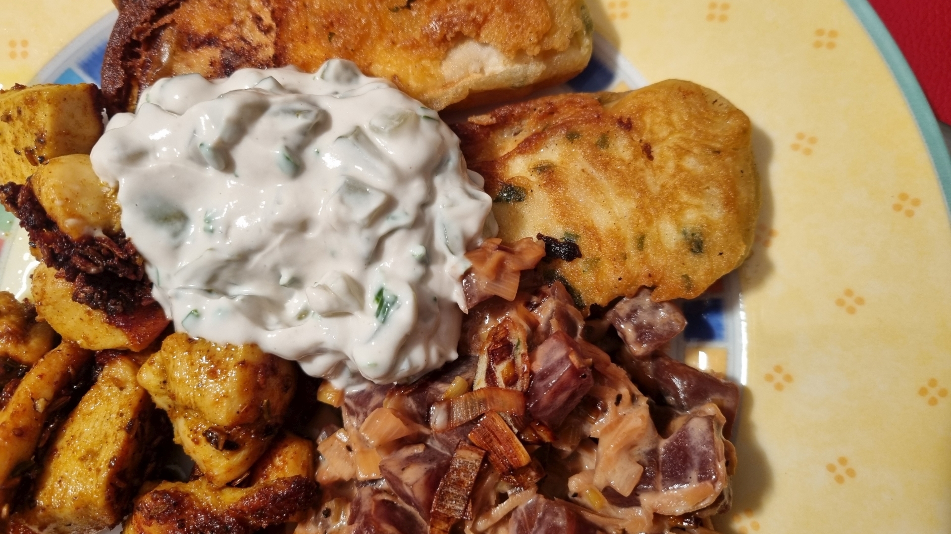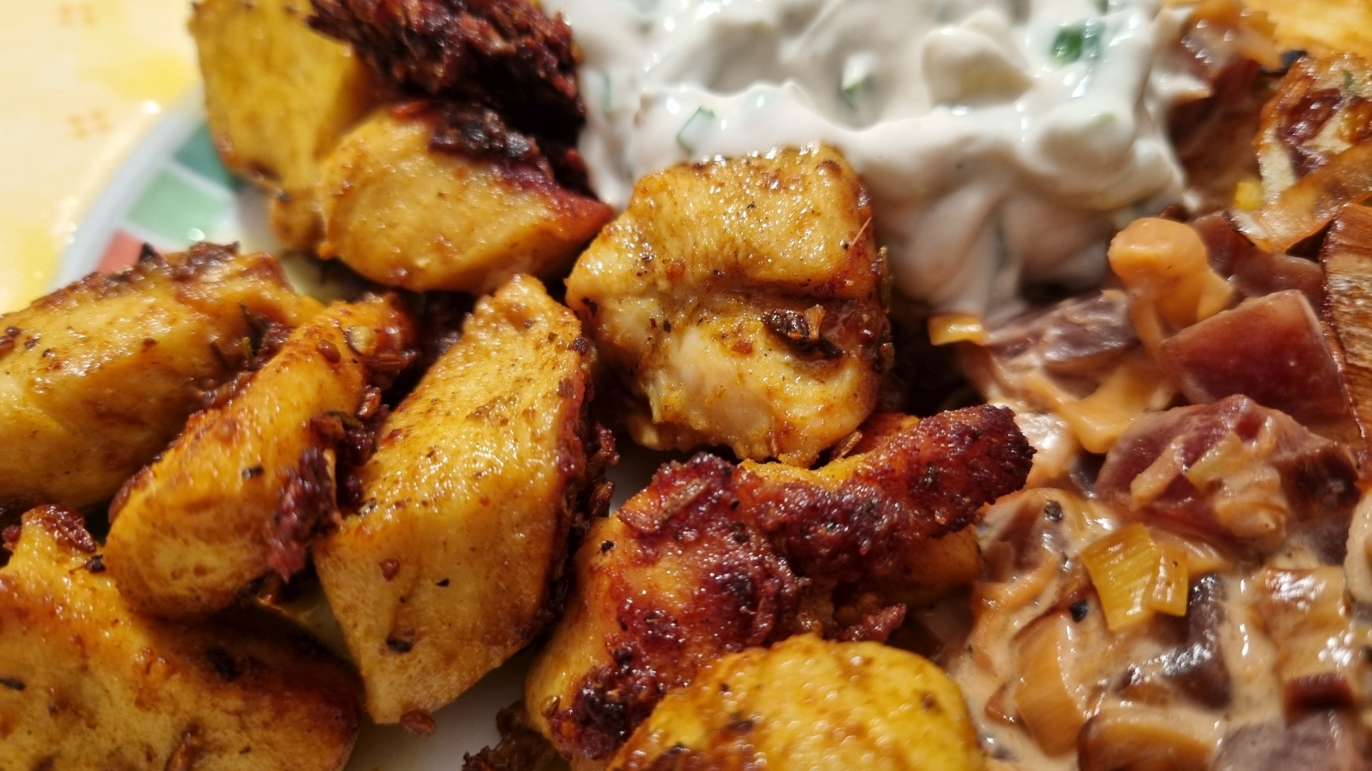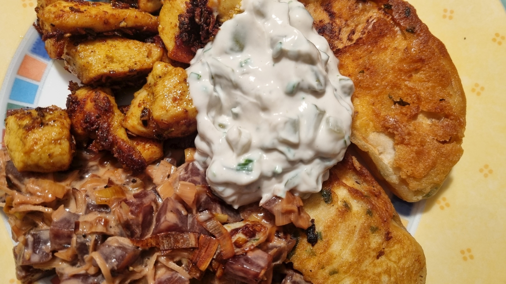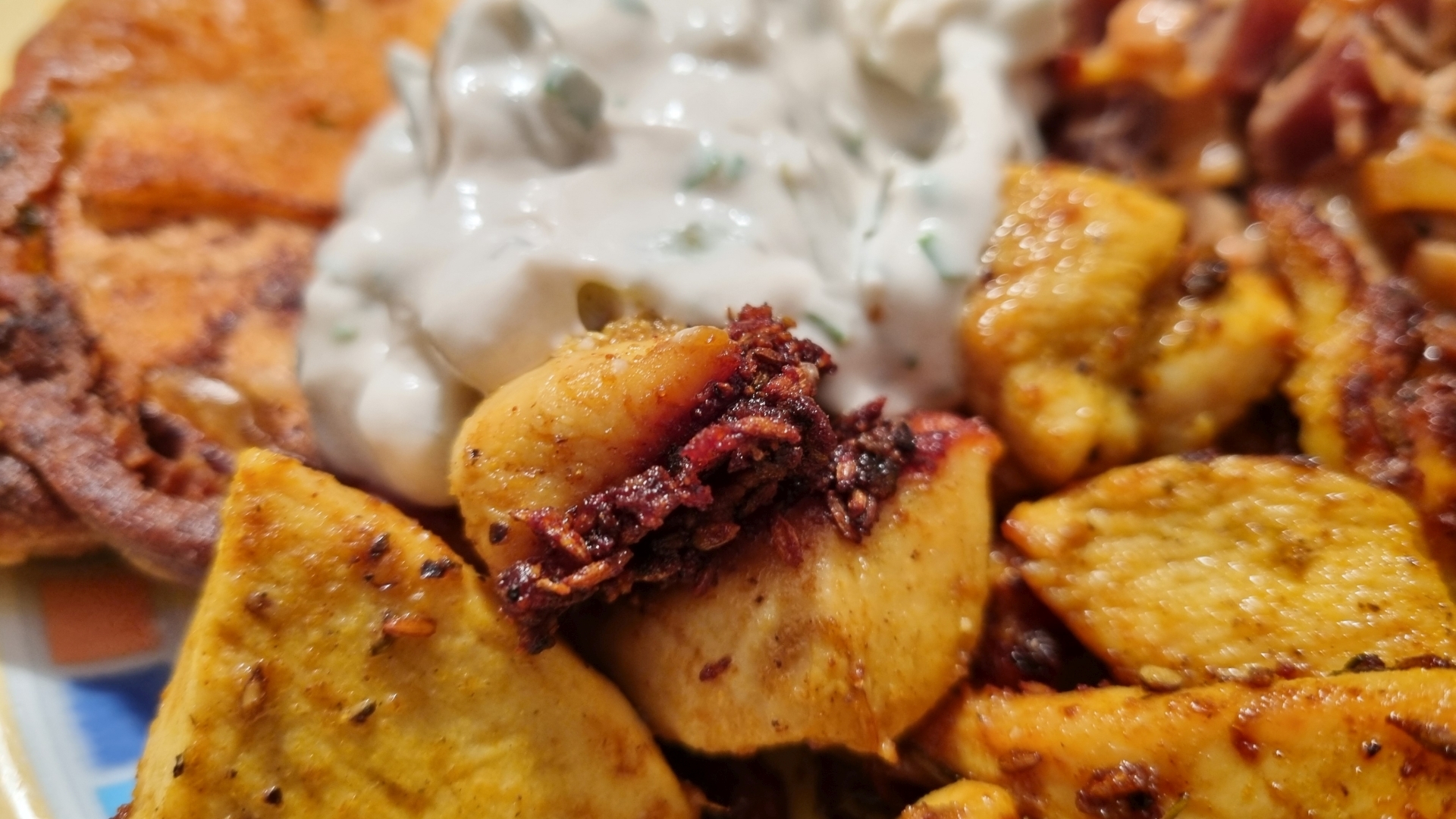 Hühnergeschnetzeltes mit gebratenem Zeller