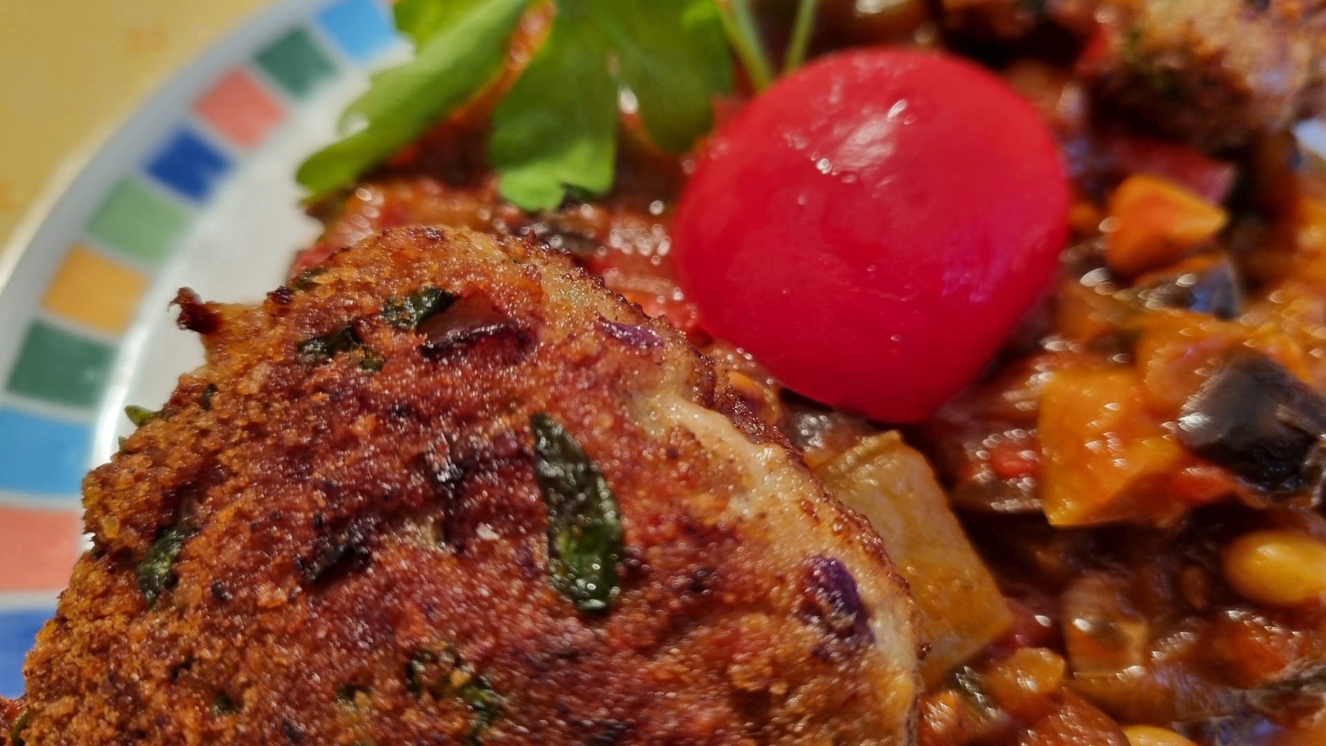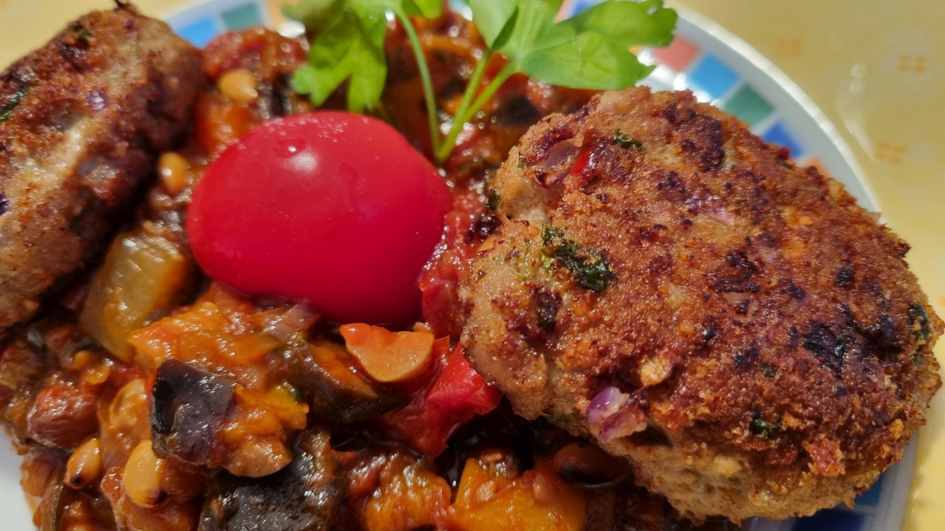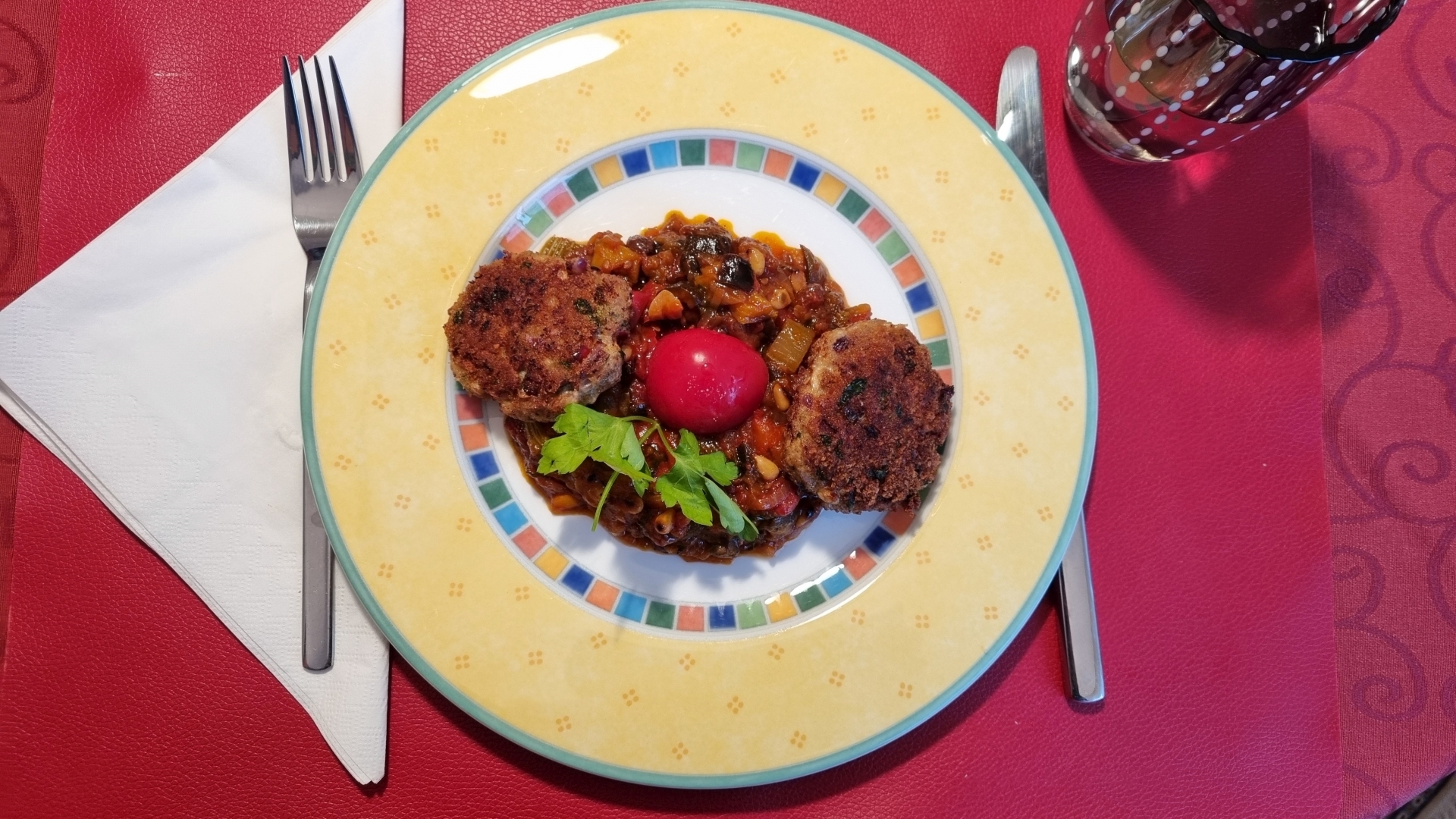Die Polpette wurden mit einer Caponata (Resteverwertung) serviert