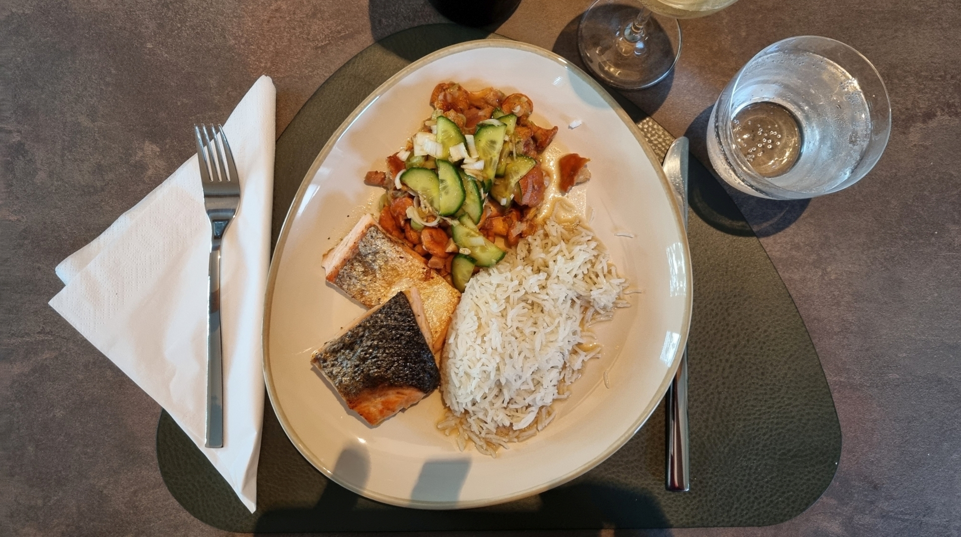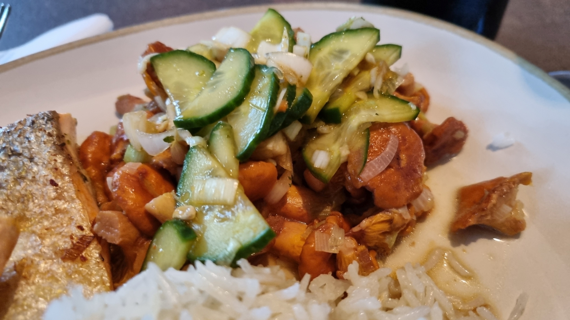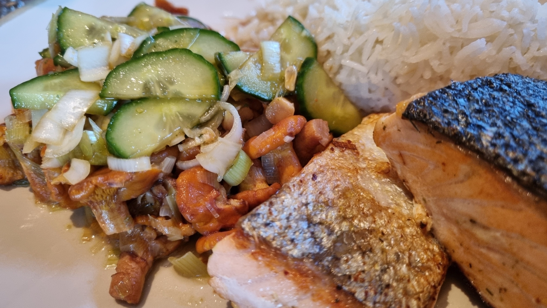Lachs mit asiatischen Eierschwammerln