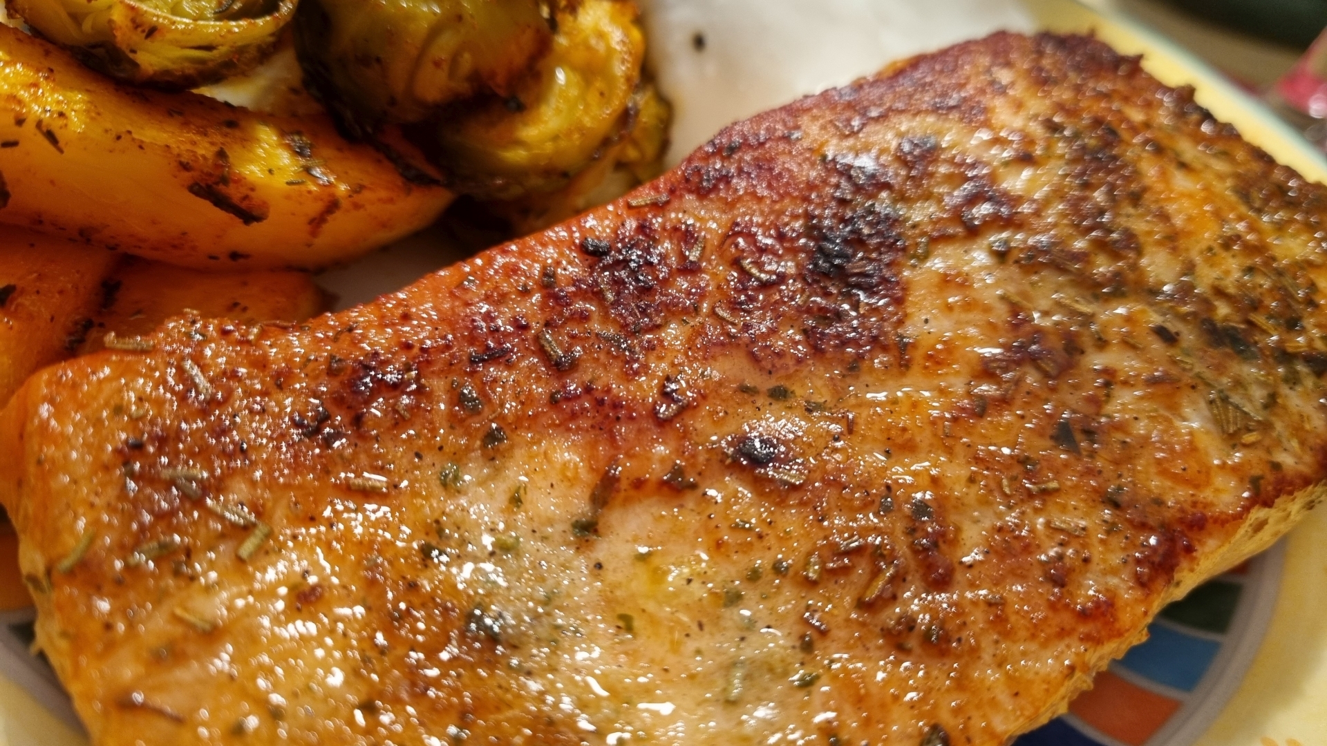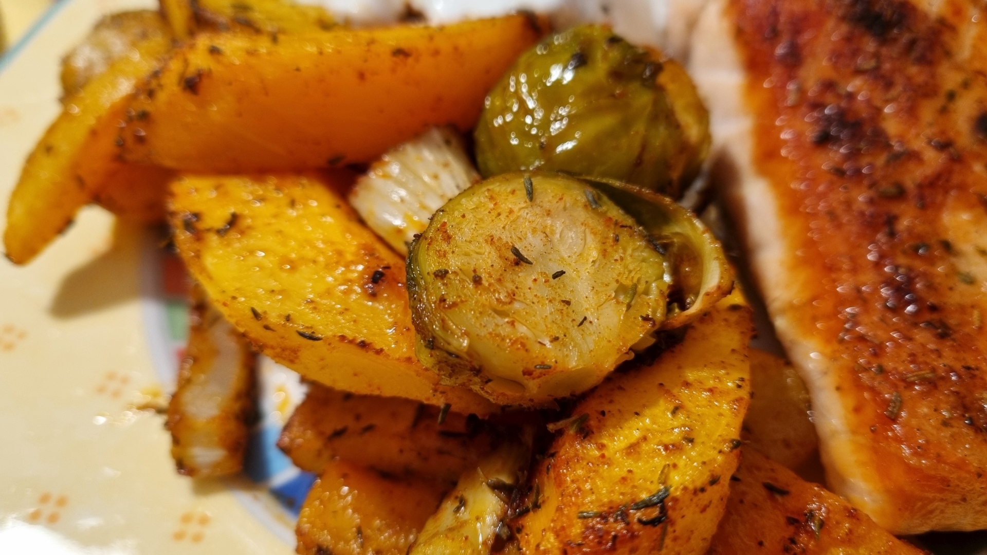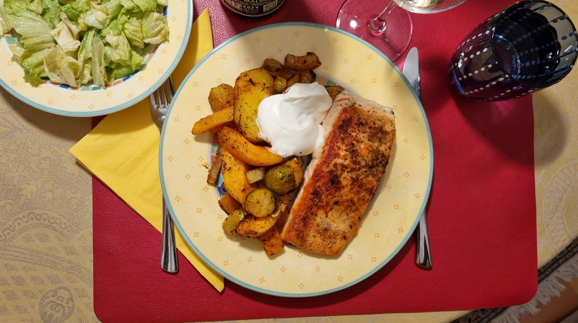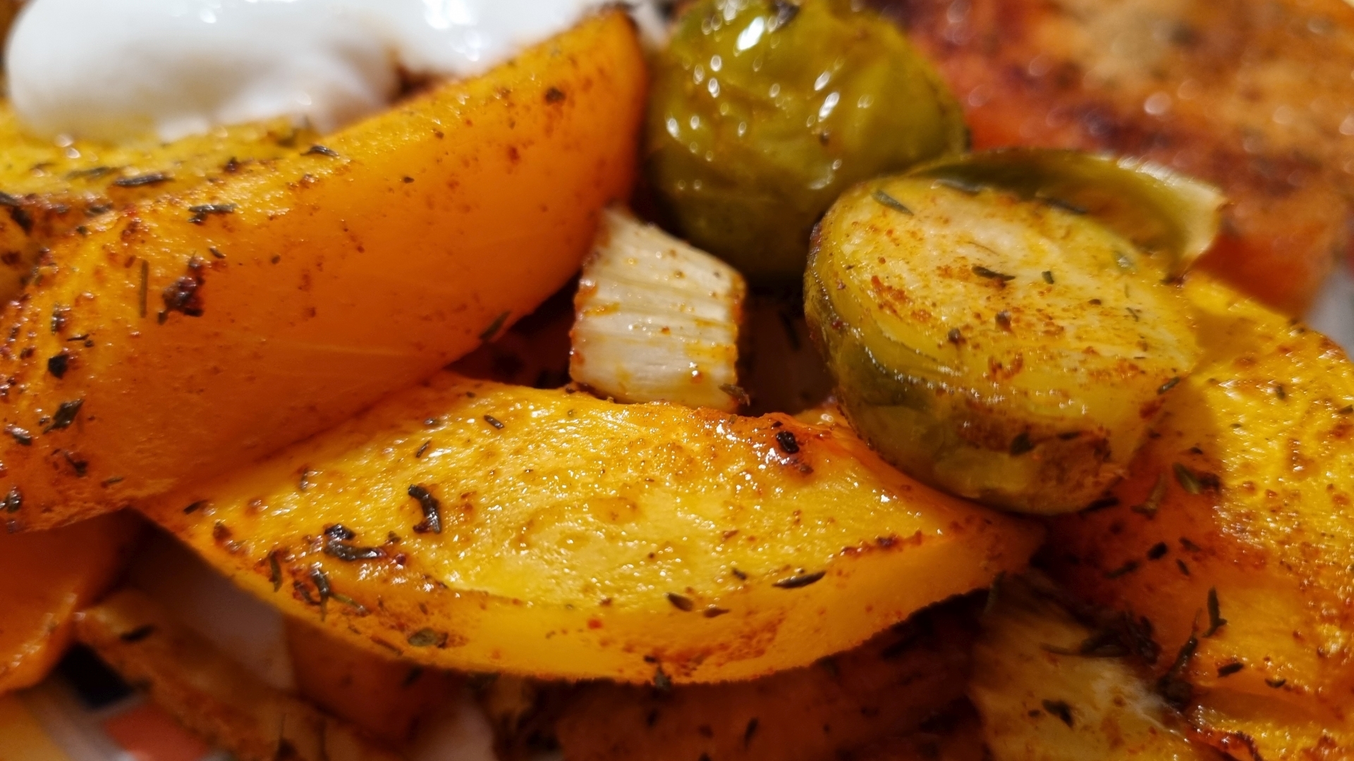 Lachs mit Kürbis-Kohlsprossen-Gemüse