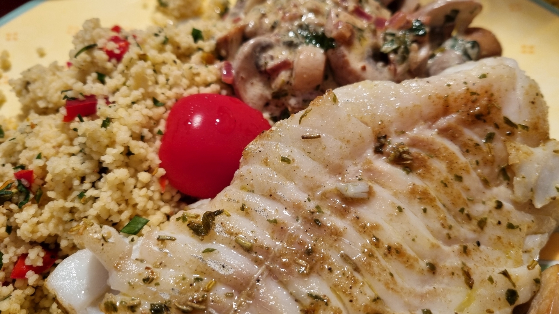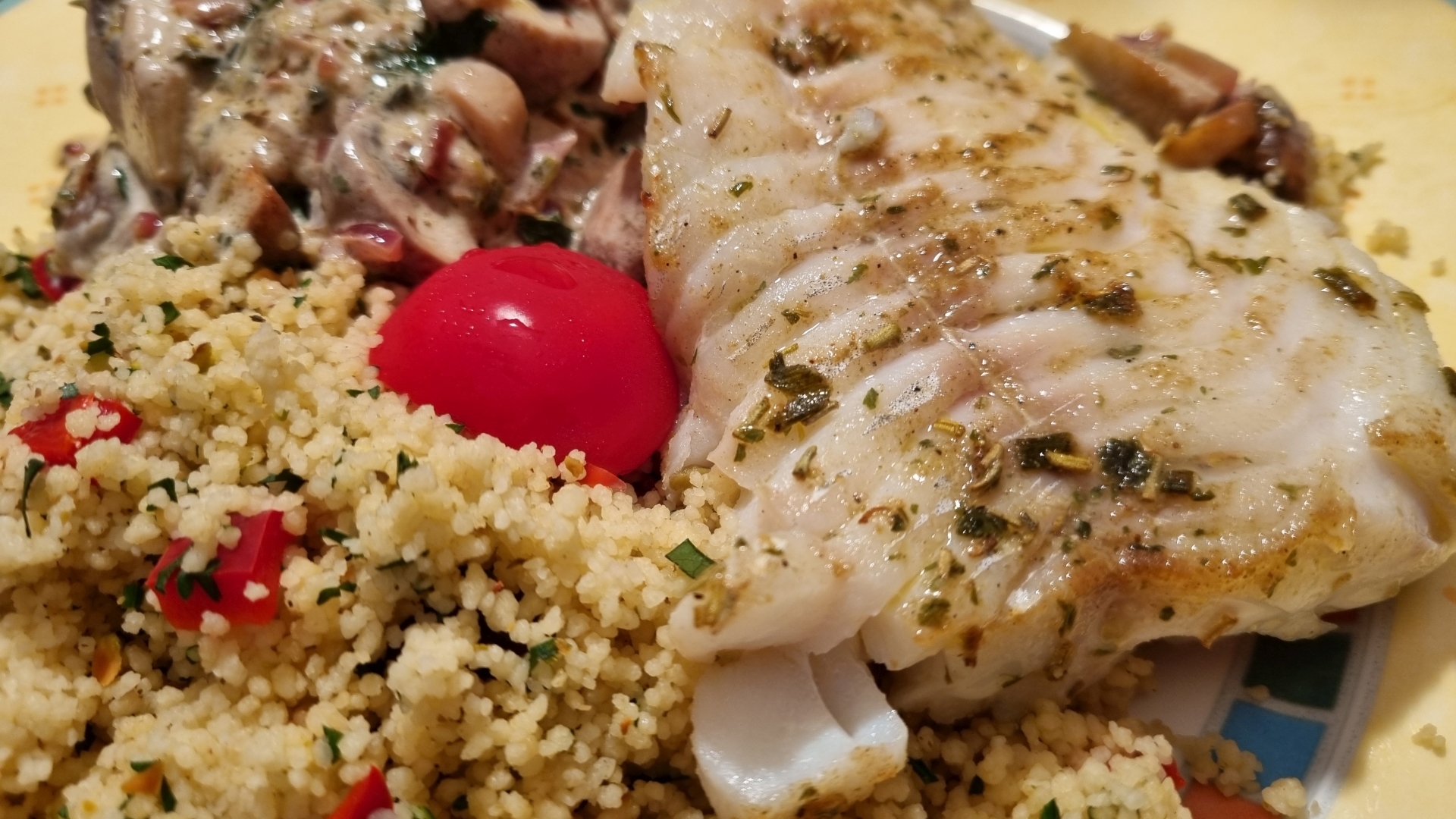 Fisch mit Couscous und Pilzen