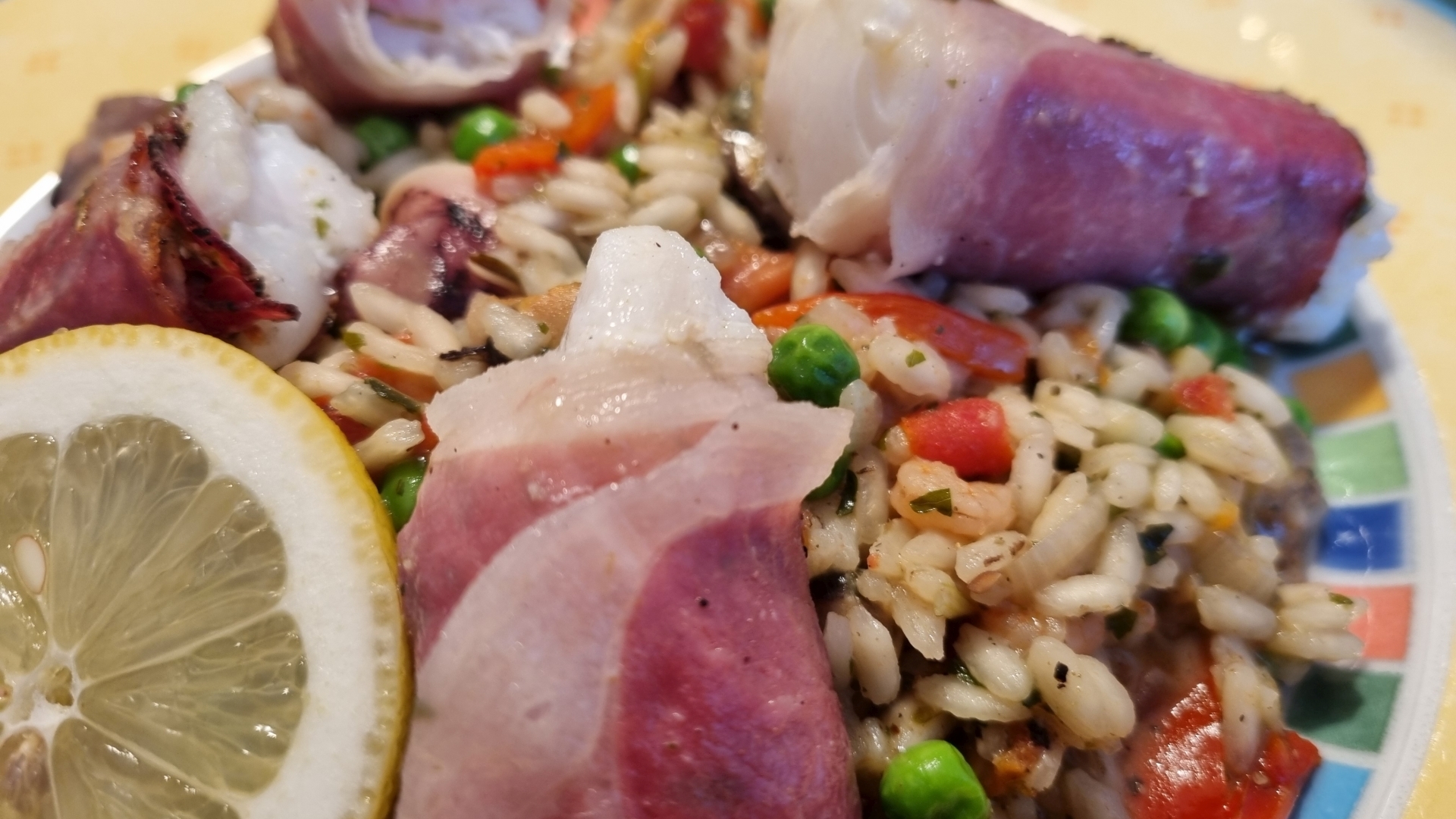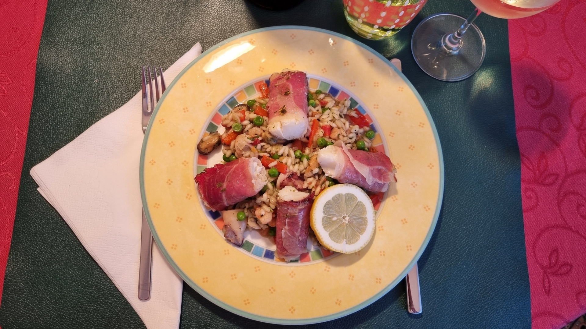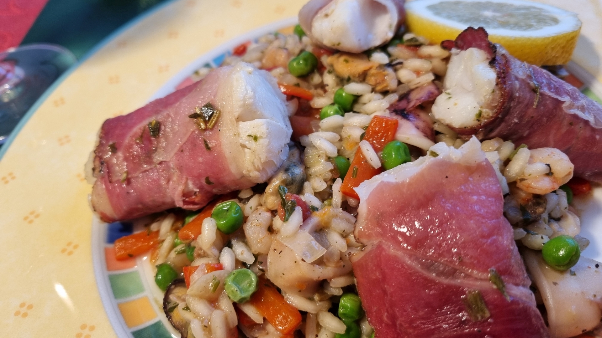 Saibling gebraten mit Polenta und sizilianischer Caponata