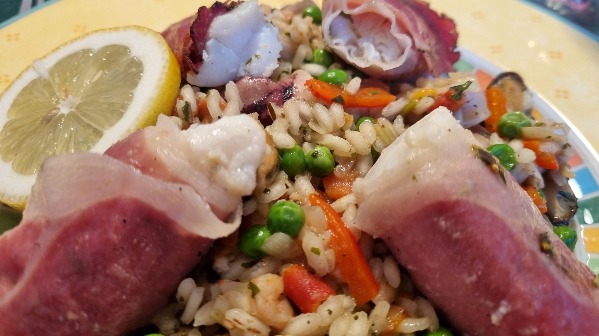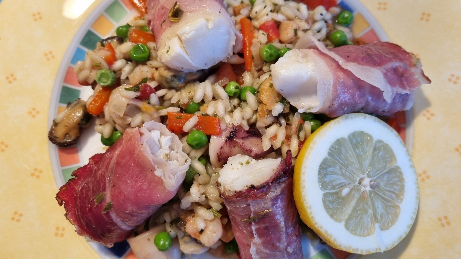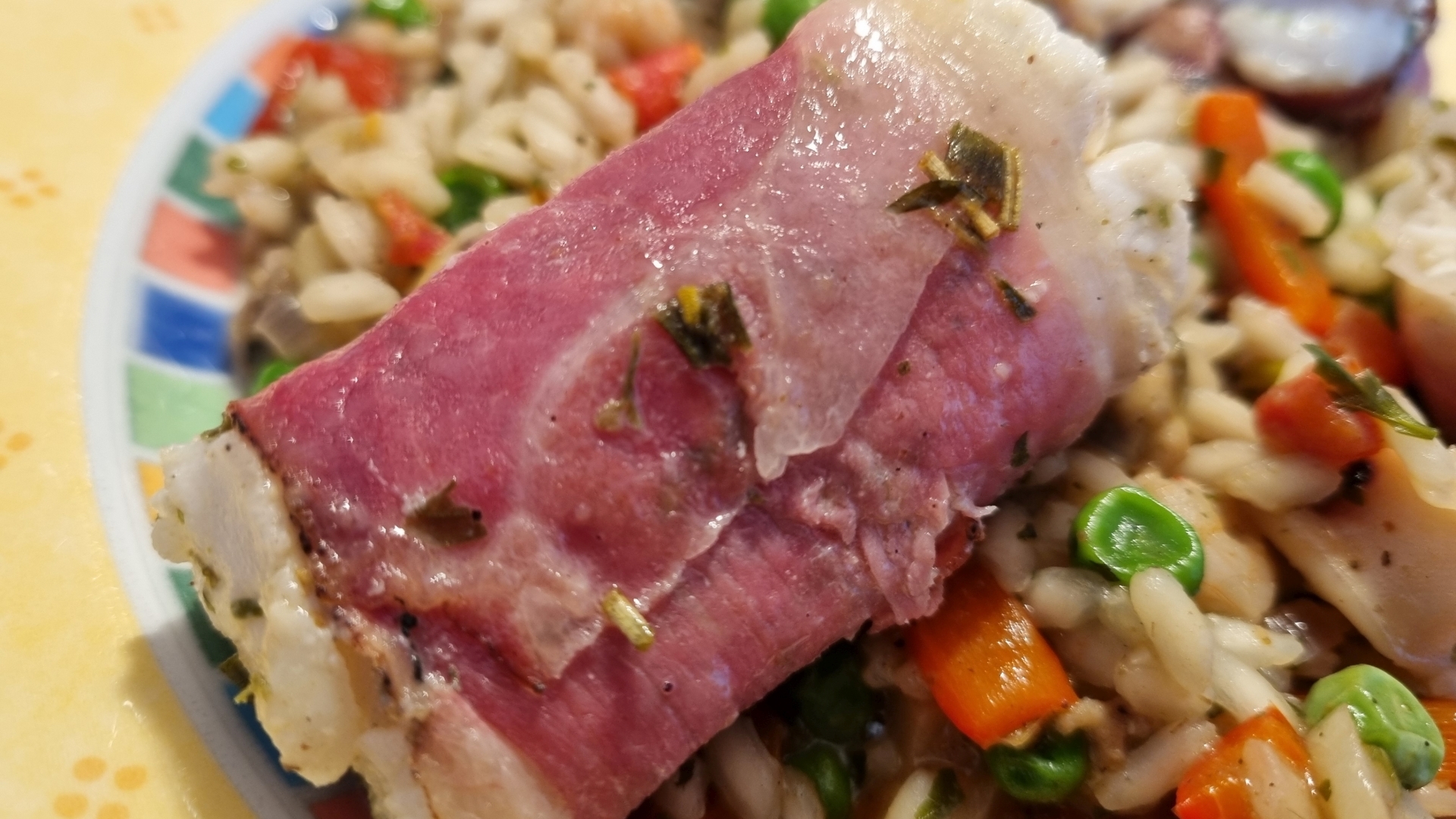 Saibling gebraten mit Polenta und sizilianischer Caponata